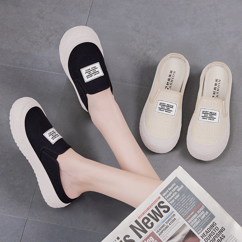 厚底帆布鞋 老北京布鞋 软底防滑懒人外穿包头半托鞋 正品 女2025新款