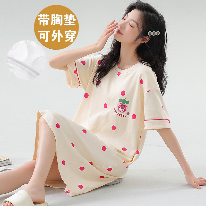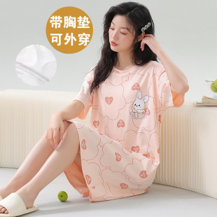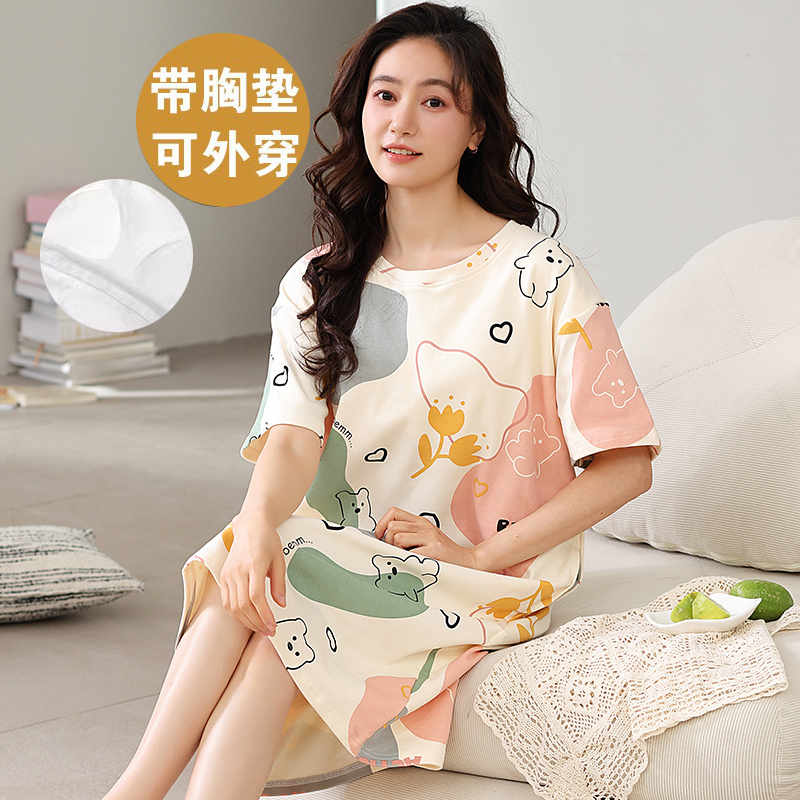 长裙凉感可外穿家居服 睡衣2025新款 猫人纯棉带胸垫睡裙女夏季 短袖