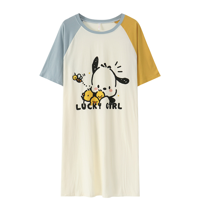 可爱睡衣家居服全棉女款 芬腾睡裙女士夏季 纯棉大码 短袖 连衣裙 薄款