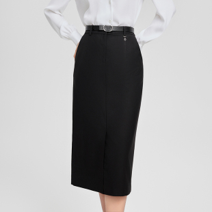 口袋工作裙职业群开衩半身裙中长款 包臀裙面试及膝一步裙春秋 西装