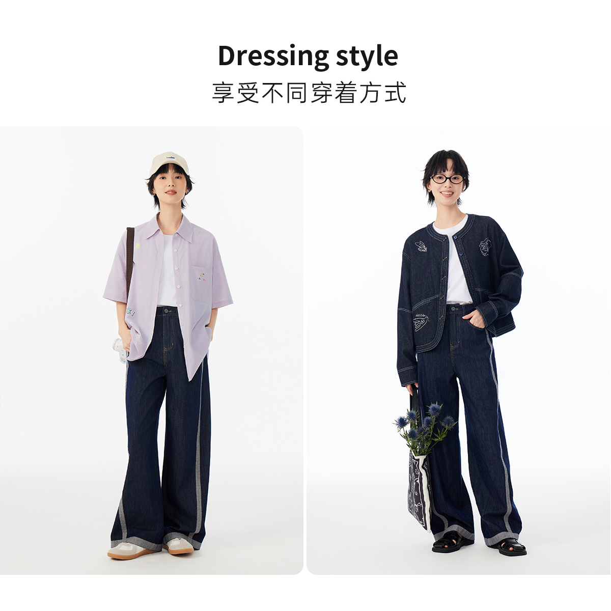 宽松撞色复古长裤 女秋2025年新款 LABS莱赛尔中腰直筒牛仔裤 LEIYU
