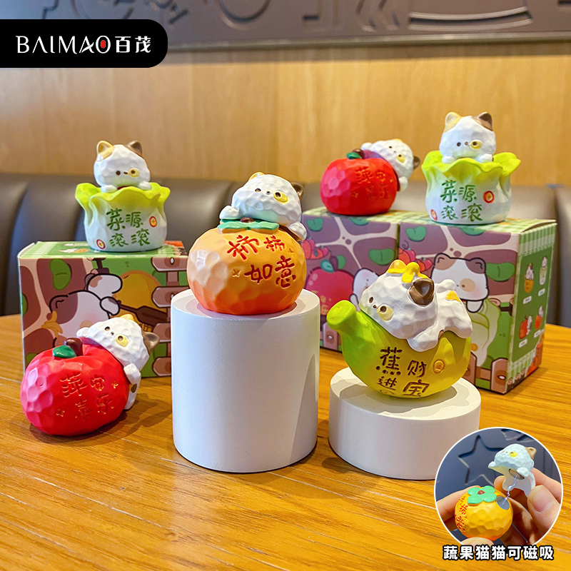 原创蔬果猫柿柿如意办公室2025年财源滚滚桌面摆件可爱家居装 饰品