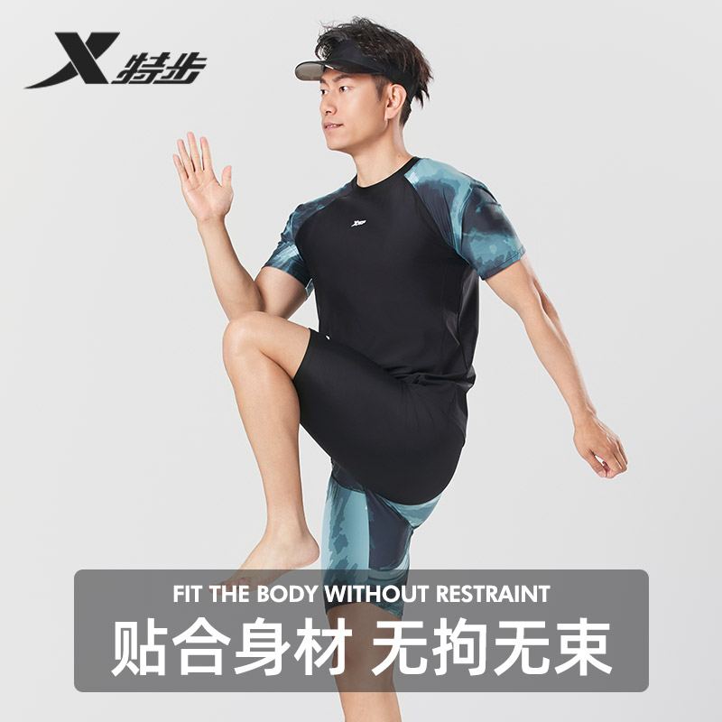 泡温泉游泳套装 特步2025新款 五分泳镜泳帽三件套成人男士 男款 泳裤