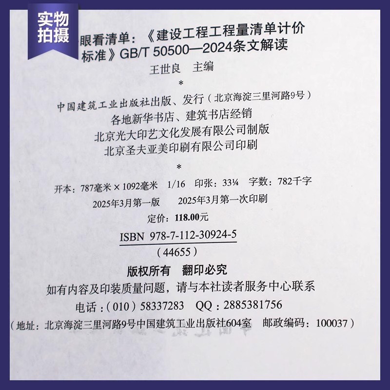 2024 50500 建设工程工程量清单计价标准 王世良 社 2025年新清单计价解读法眼看清单条文解读GB 中国建筑工业出版