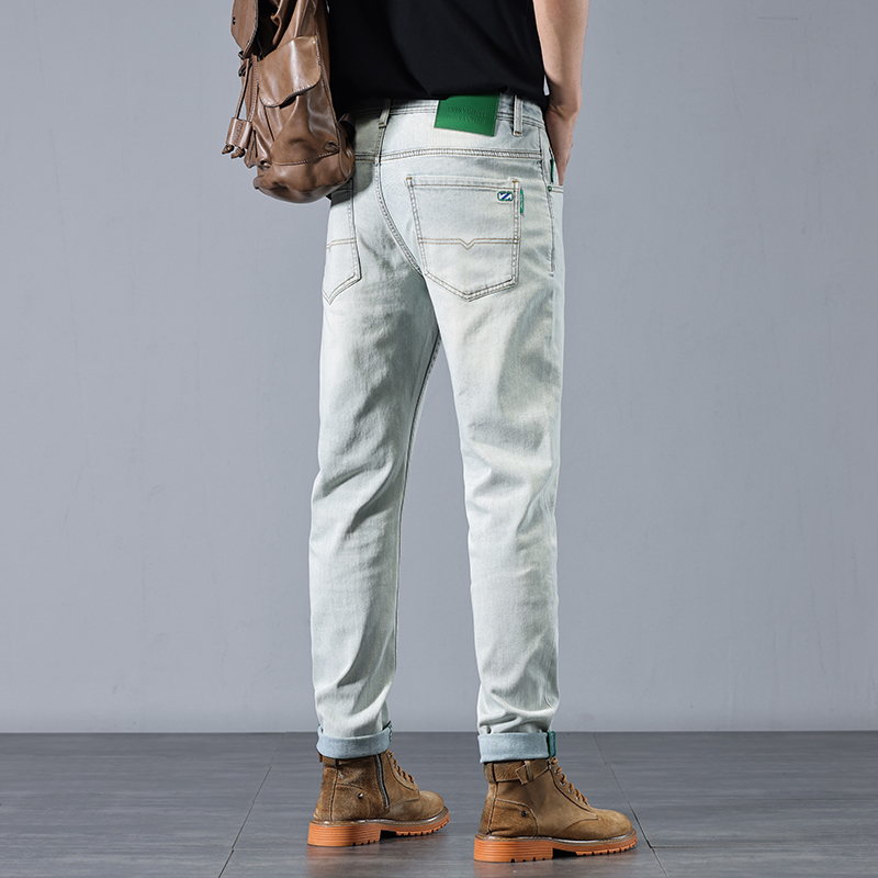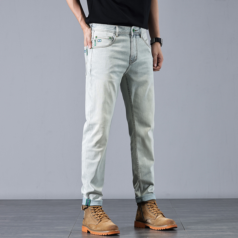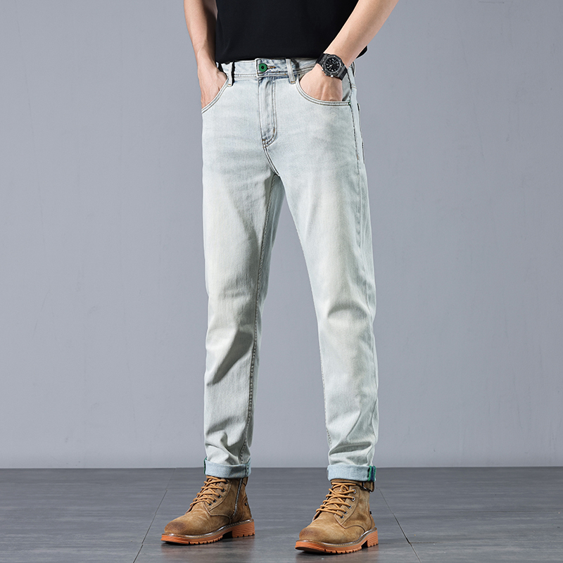 高端宽松直筒弹力商务长裤 2025年男款 修身 春夏新款 子浅蓝色 男士