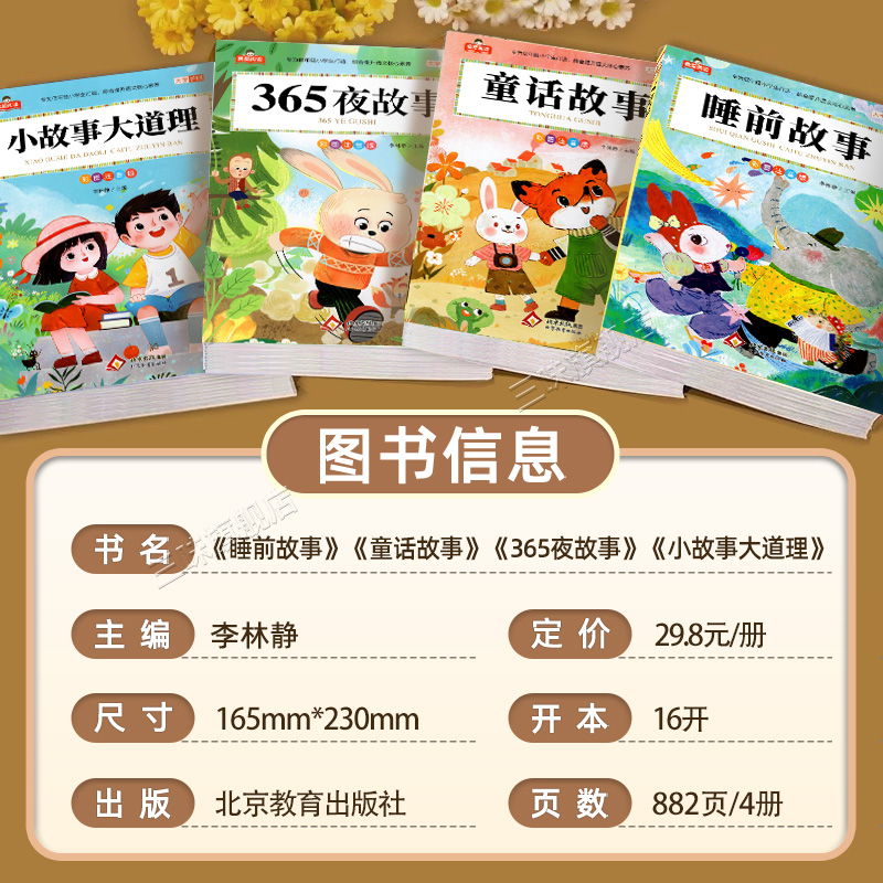 全套4册儿童故事书睡前故事大全365夜童话故事幼儿园早教大班彩图注音版 6岁宝宝书籍带拼音绘本小学生一二三年级阅读课外书必读