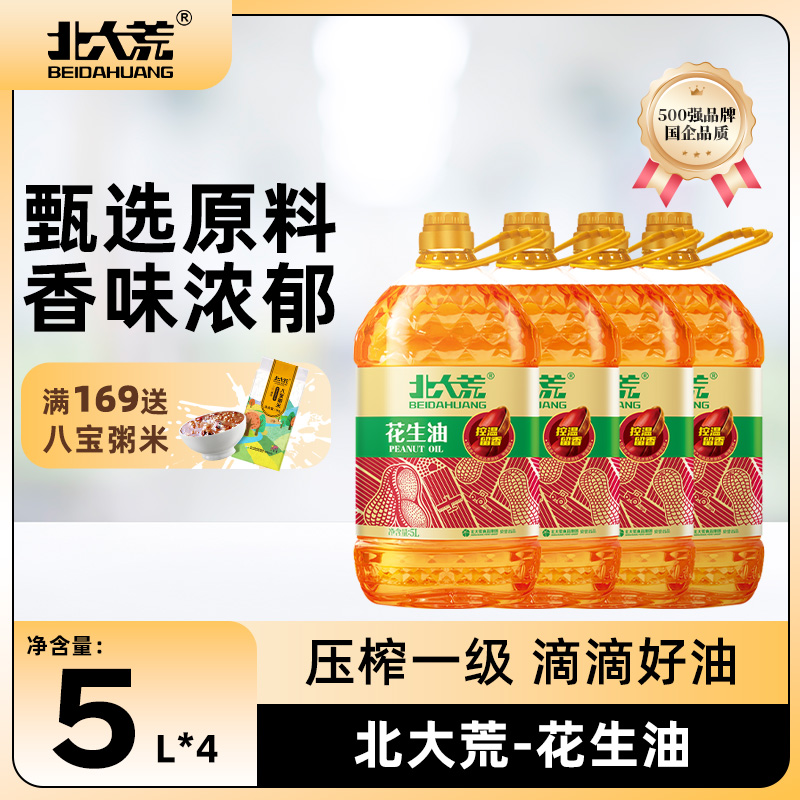 金龙鱼花生油不油腻花生油5L食用油家用炒菜物理压榨一级5升大桶
