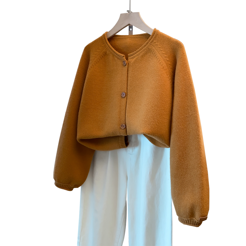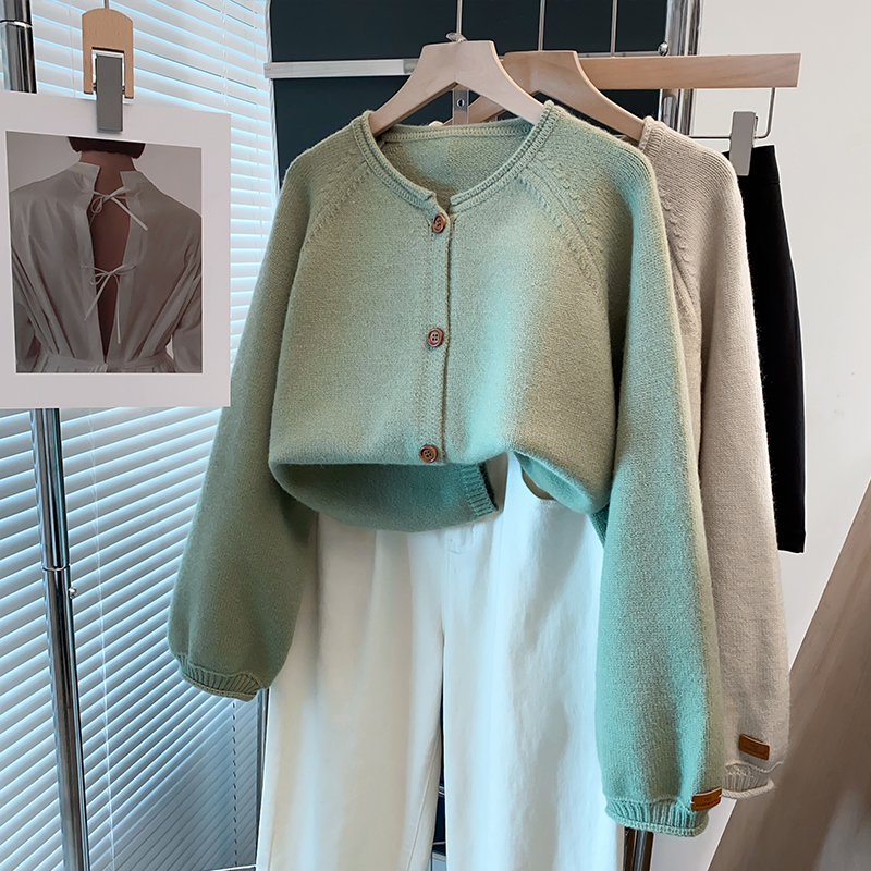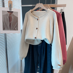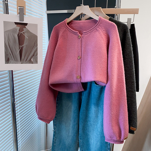 复古纽扣上衣宽松外套毛衣 新款 拉夏贝尔温柔松弛感针织开衫 女秋季