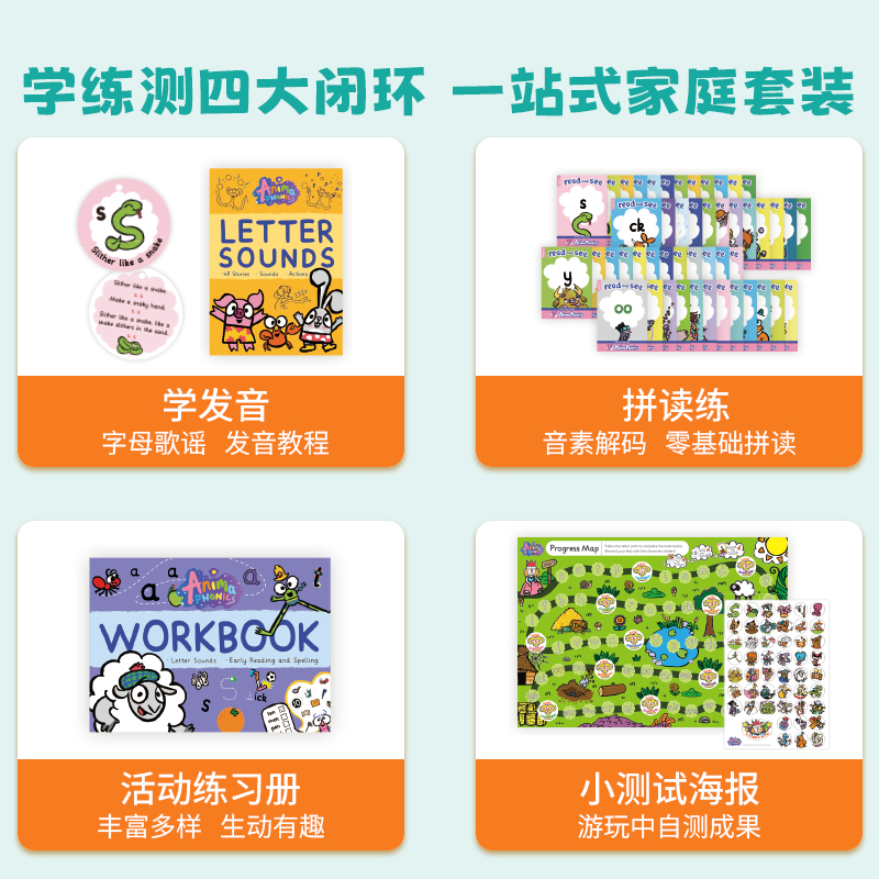 Phonics自拼动物城 Anima 幼儿英语启蒙自然拼读教材 孩子零基础英语学习 支持小BOOK点点读 26个英文字母单词发音早教 家庭版