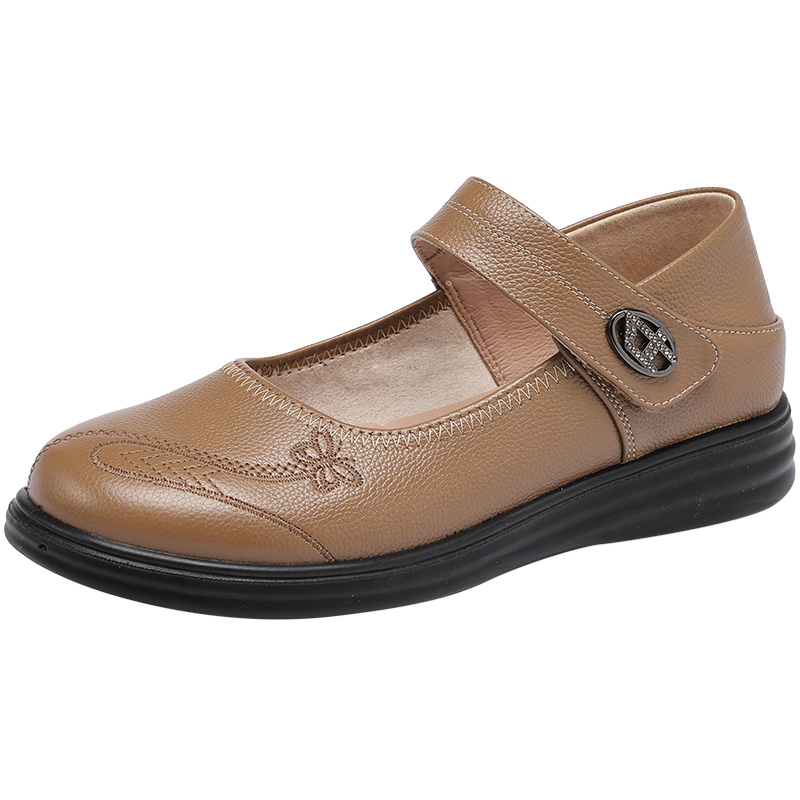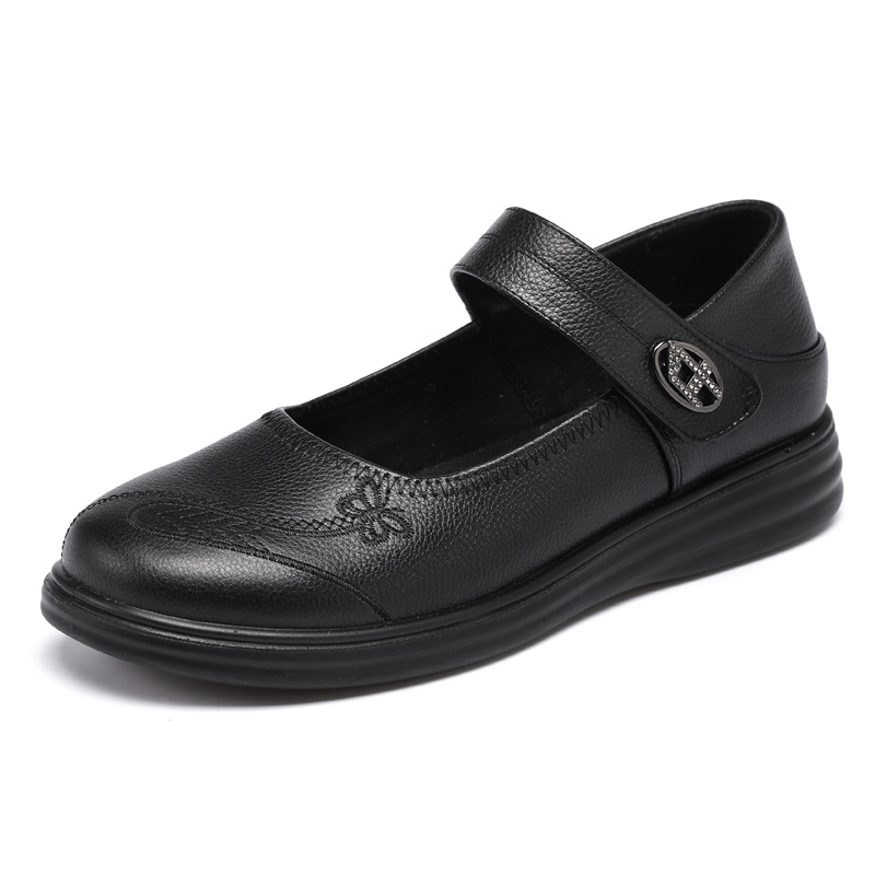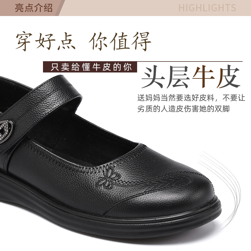 圆头老人女鞋 旺奈真皮软底妈妈鞋 中老年大码 平底防滑浅口单鞋 春季