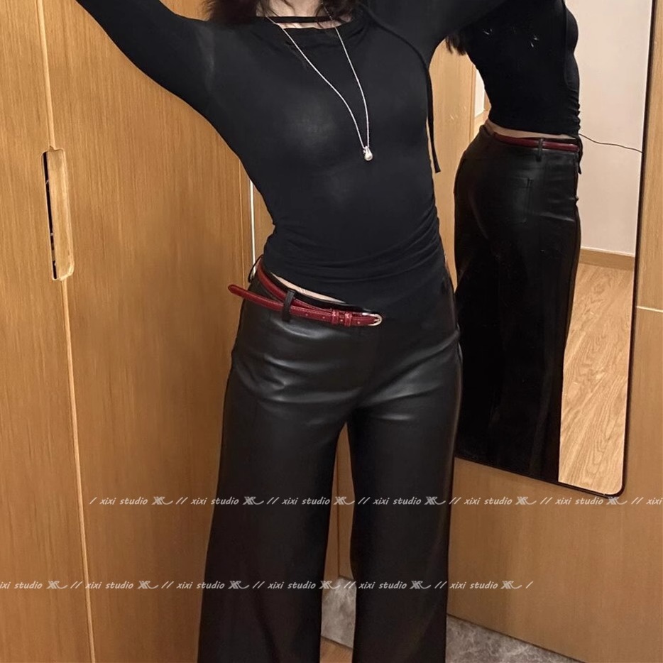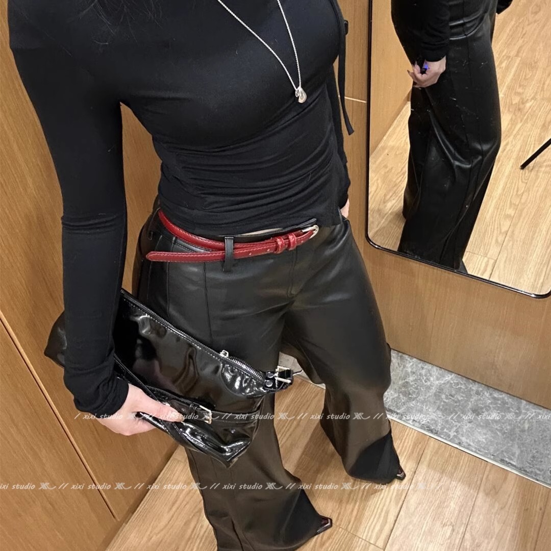 带装 穿搭配饰连衣裙束腰显瘦裤 饰女 腰带复古牛仔裤 辣妹酒红色细款