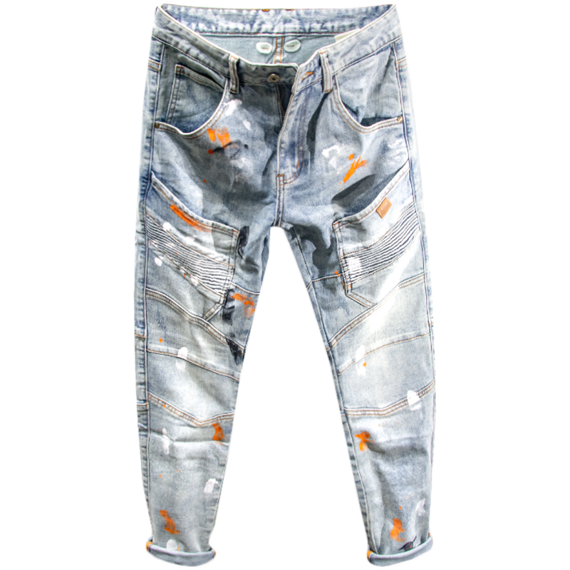 潮牌宽松阔腿休闲痞帅垂感直筒长裤 摩朝美式 男士 牛仔裤 子 扎染大码