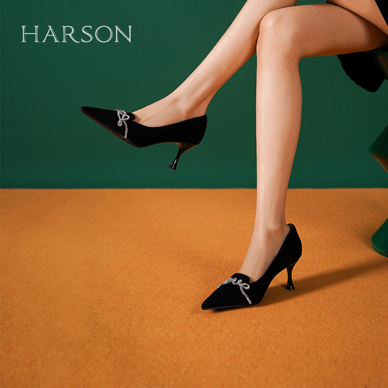 宽楦羊皮尖头细跟通勤浅口单鞋 大码 黑松露 秋冬女鞋 7or9黑色高跟鞋
