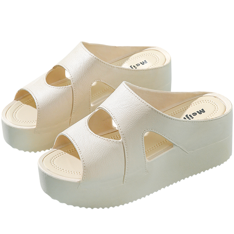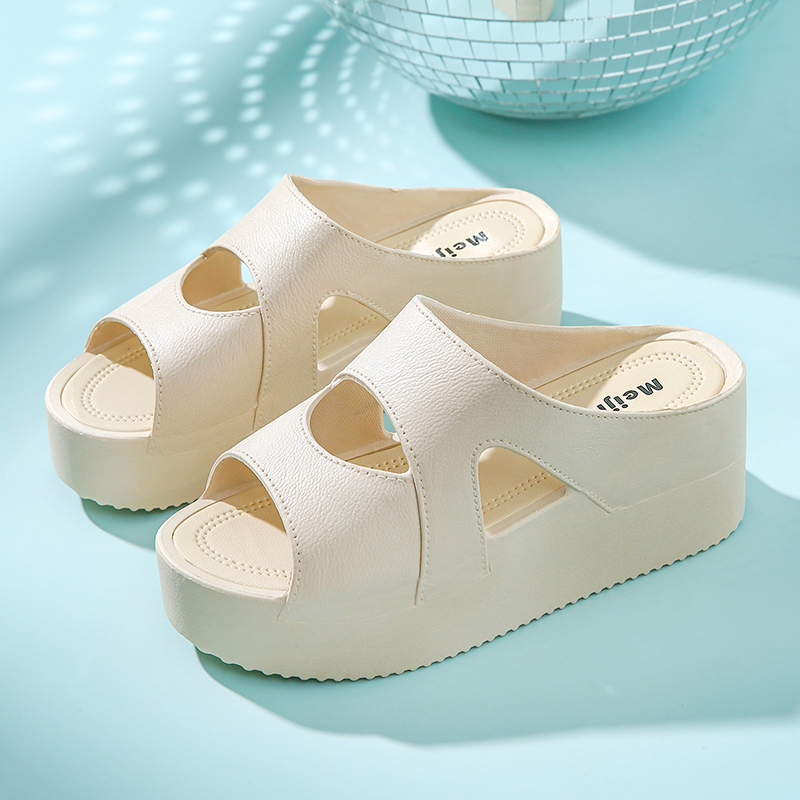 休闲坡跟松糕底塑料居家凉拖鞋 韩版 防滑 女夏高跟厚底外穿时尚 拖鞋
