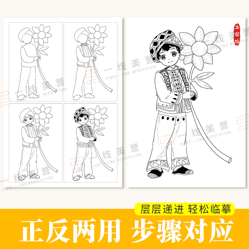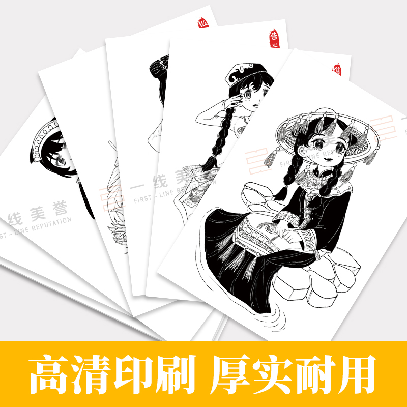 漫画线描人物临摹卡 儿童绘画临摹本美术画册入门自学零基础技法教材动漫手绘漫画基础教程书 漫画人物绘画民族线描人物卡通q版
