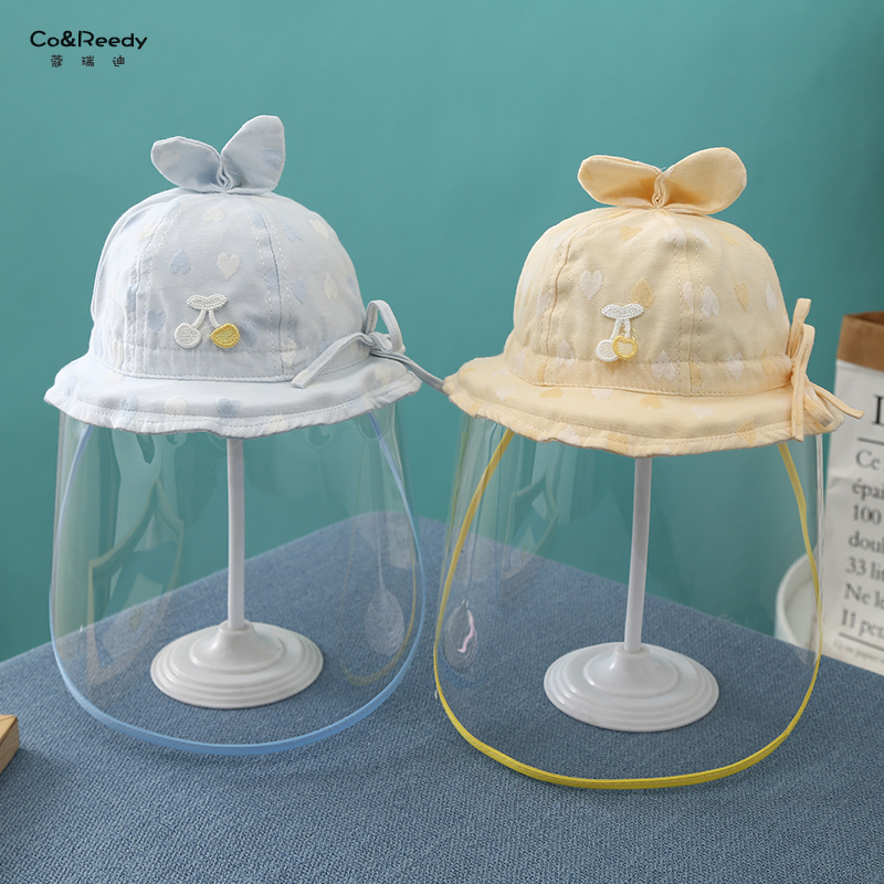 婴儿防疫帽新生婴幼儿儿防飞沫面罩宝宝防护帽樱桃遮阳防晒渔夫帽