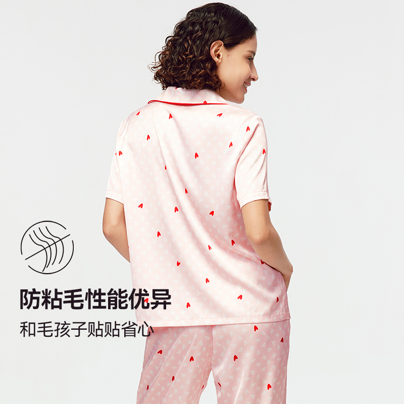 家居服套装 长裤 爱美丽讨你欢心印花凉感睡衣早秋短袖 女 月光丝