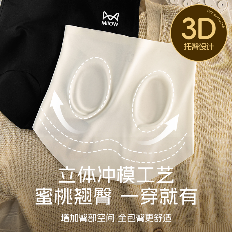 头 桑蚕丝7A抑菌裆女士无痕三角裤 猫人内裤 女高腰X型收腹提臀短裤