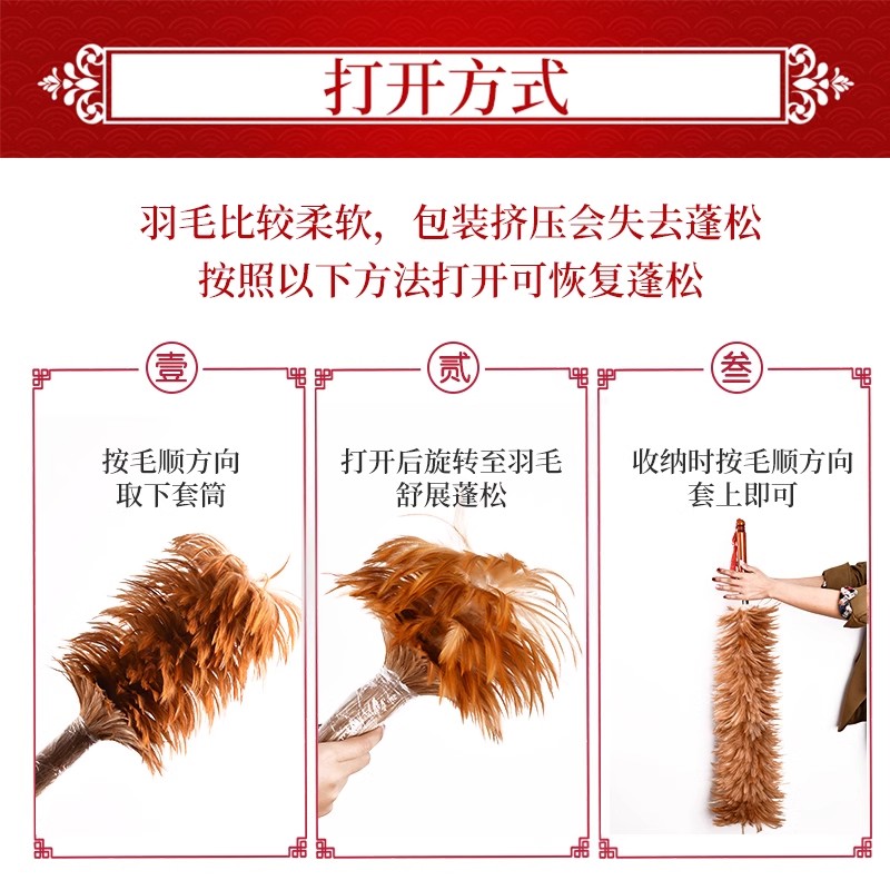纯手工真鸡毛掸子加厚可伸缩家用清洁除尘高端车用扫灰尘床底