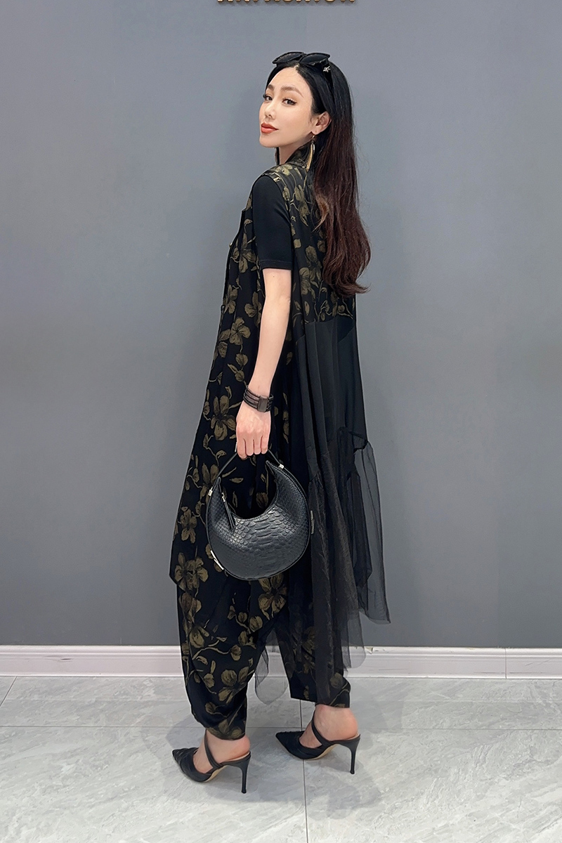 优雅宽松女装 2025秋新款 两件套时尚 缎面提花长马甲哈伦裤 套装