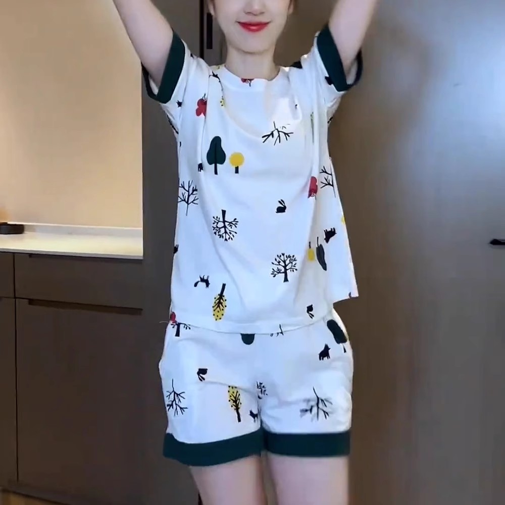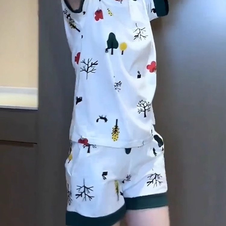 全棉家居服休闲套装 曼系男士 甜美时尚 宽松开衫 纯棉睡衣女春秋时尚