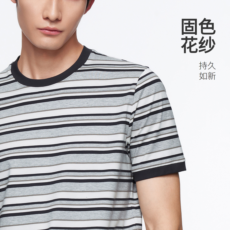 透气T恤 短袖 金利来2024年夏季 男士 设计感条纹休闲圆领短T 新款