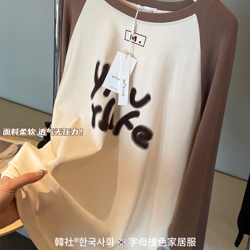 休闲简约套装 韩社字母撞色家居服2024春秋莫代尔感睡衣女长袖 韩版
