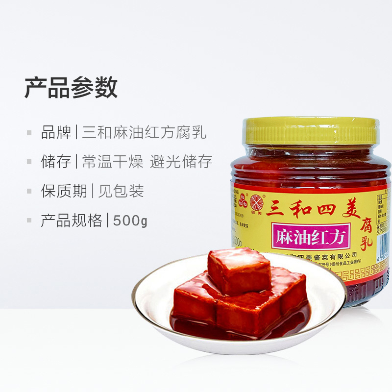 中华老字号 三和四美酱菜麻油红方腐乳500g下饭小咸菜配粥配饭