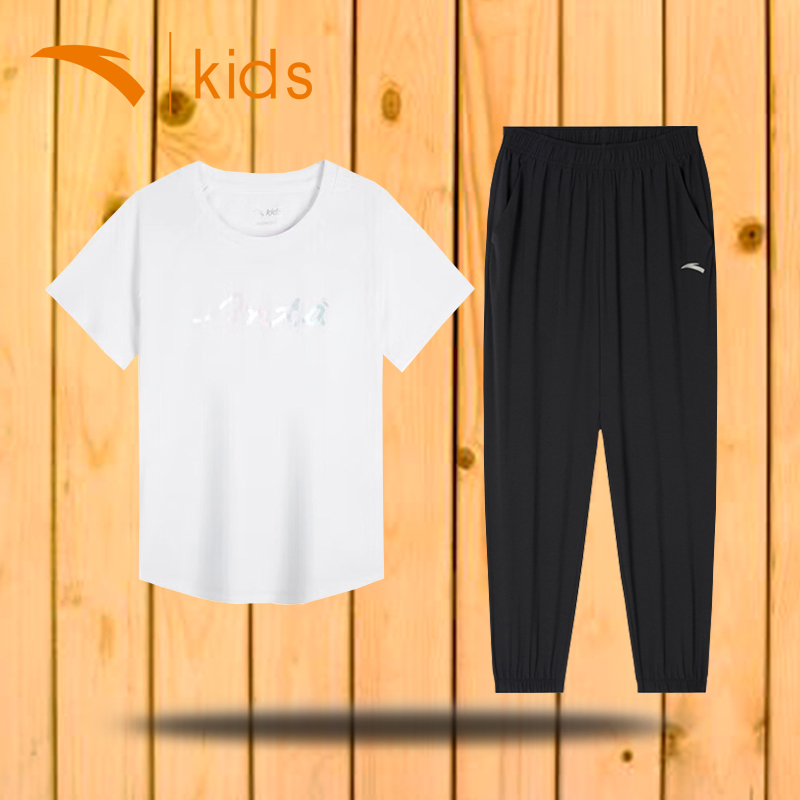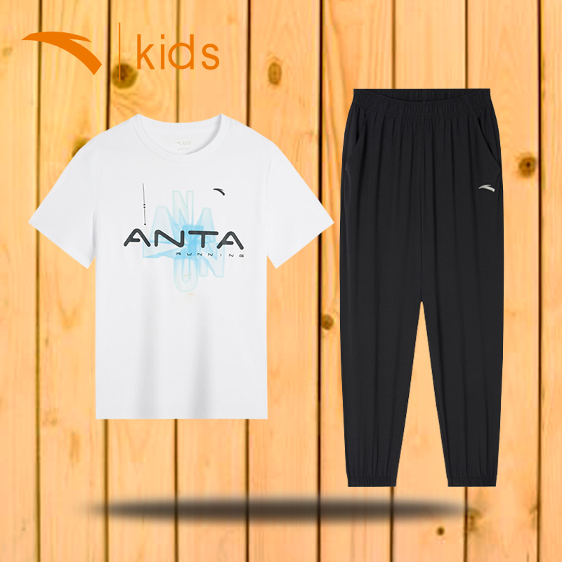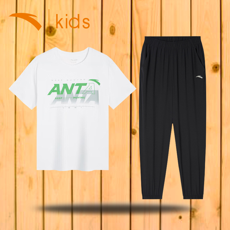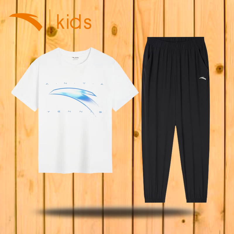 2025秋季 套装 新款 儿童t恤长裤 安踏童装 运动服中大童夏装 男童短袖