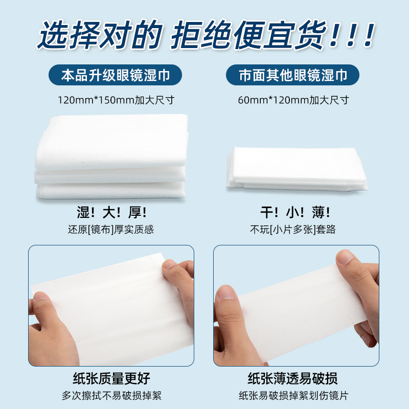 能适眼镜清洁湿巾持久防起雾眼镜布电脑屏幕镜片专用一次性擦拭纸不伤镜片擦拭湿巾相机镜头清洁湿纸巾擦镜纸