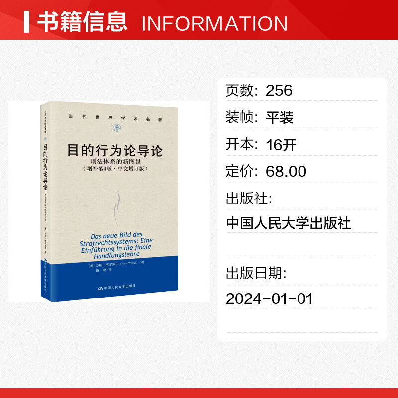 新图景 图书籍 新华书店正版 著 行为论导论 刑法体系 陈璇 ·中文增订版 增补第4版 法学理论社科 目 德 译 汉斯·韦尔策尔