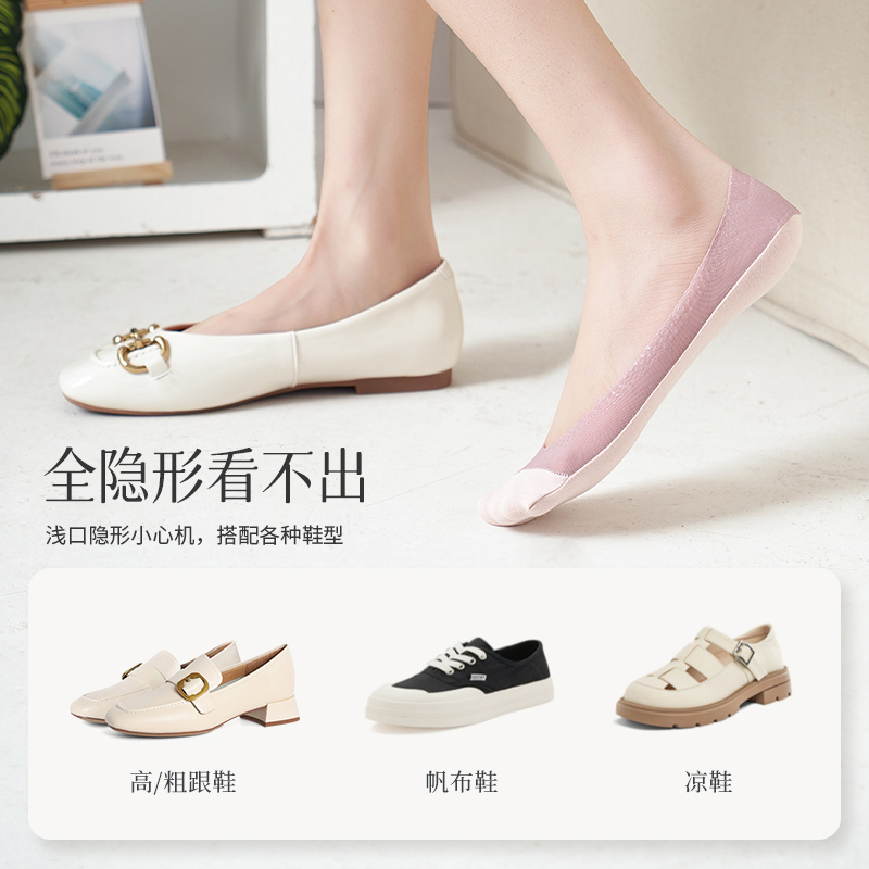 高跟鞋 袜子薄款 袜子 冰丝隐形袜棉制底防滑不掉跟浅口鞋 船袜女夏季