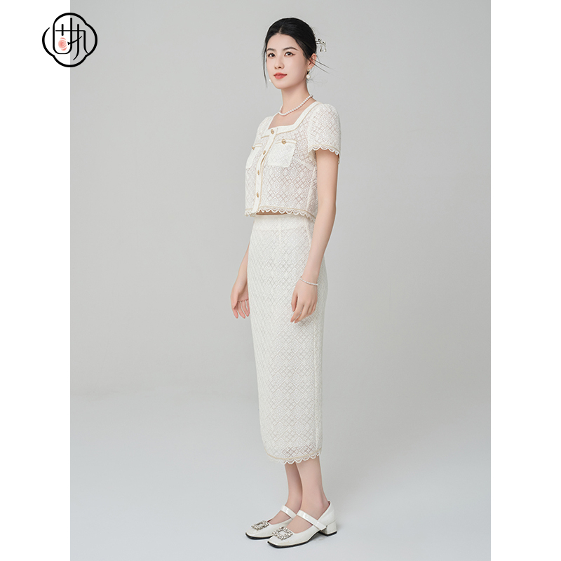 气质开衩直筒蕾丝中长款 法式 半身裙10842BQ09174 新款 固执2025夏季