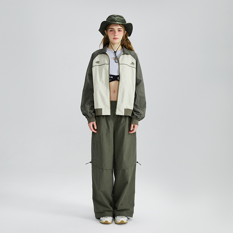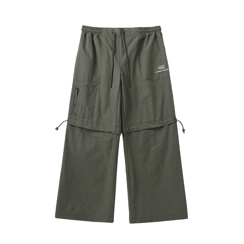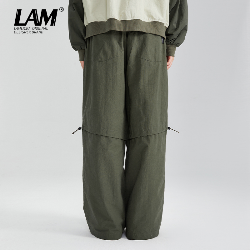 潮牌女刺绣印花休闲口袋薄宽松阔腿裤 直筒裤 长裤 LAMLICKA国潮工装