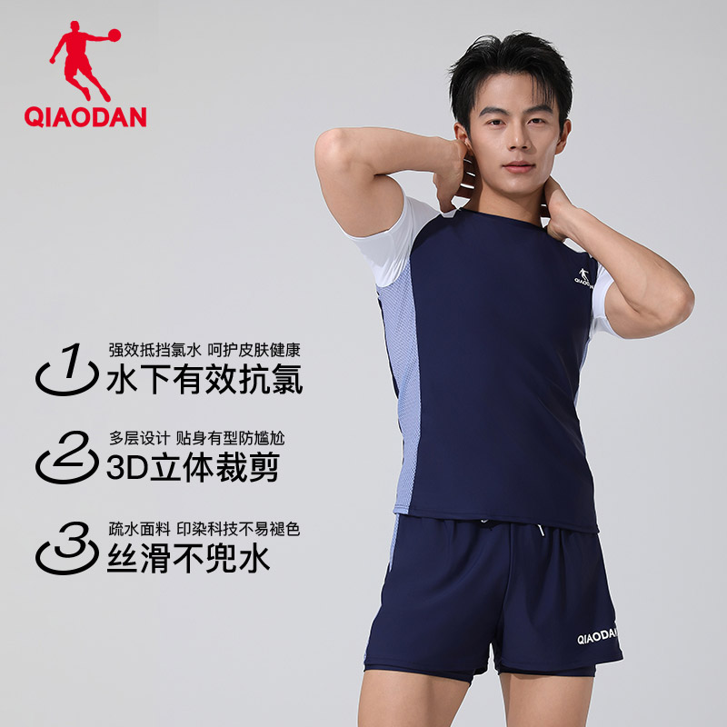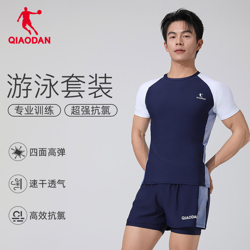 紧身弹力泳裤 套装 修身 泳衣运动健身速干短袖 男士 乔丹2025年新款