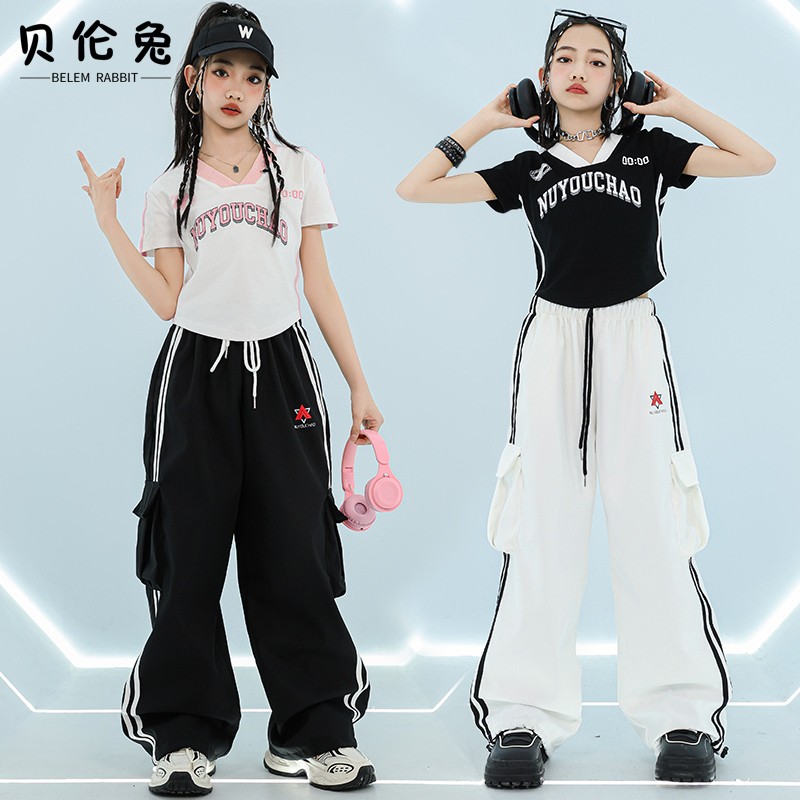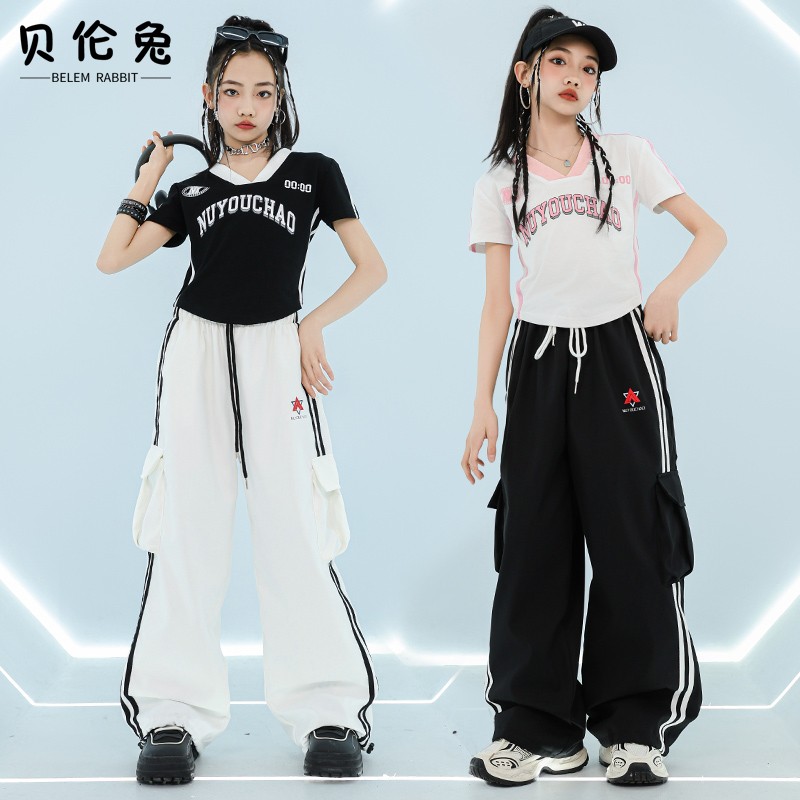 女童爵士舞表演出服少儿女团jazz修身 时髦甜酷日常练功舞蹈服潮装