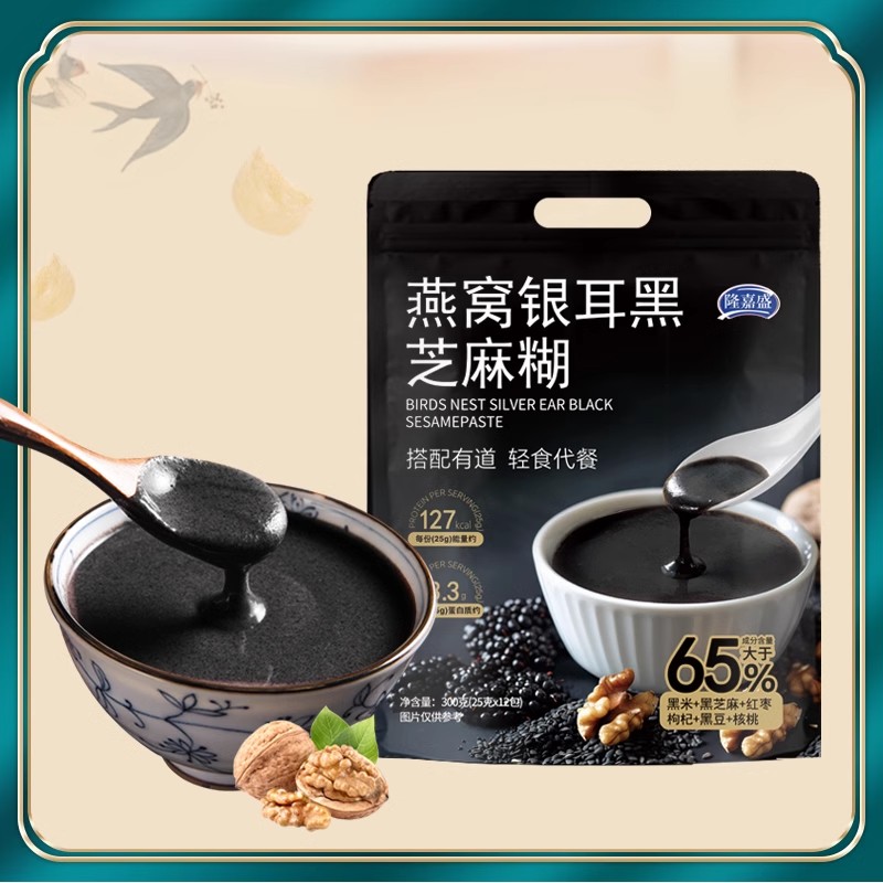 隆嘉盛燕窝银耳黑芝麻糊即食冲饮300g 醇香浓郁饱腹早餐代餐粉 袋