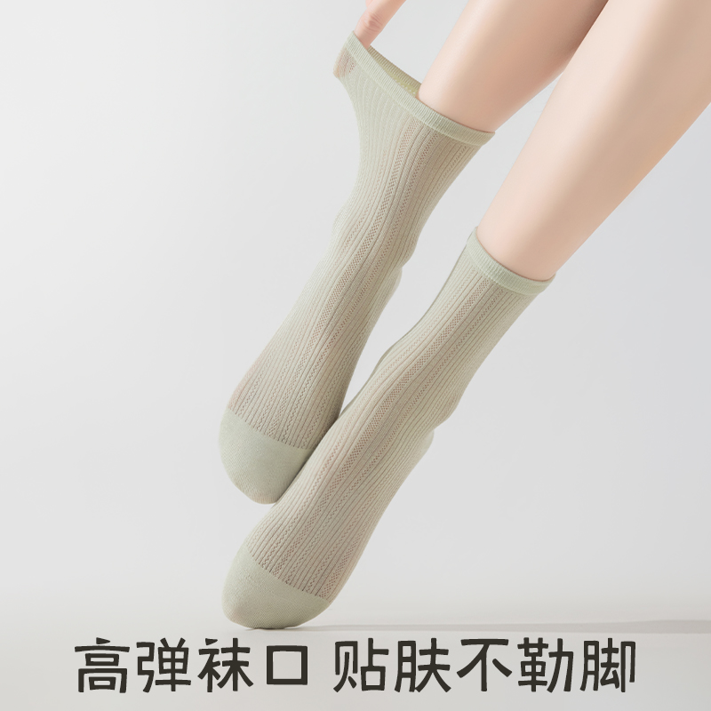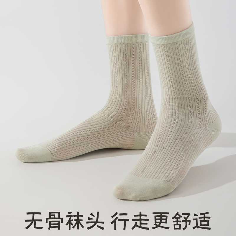 棉伙棉伴海藻袜舒适抗菌防臭男女商务运动纯色裸感中筒袜