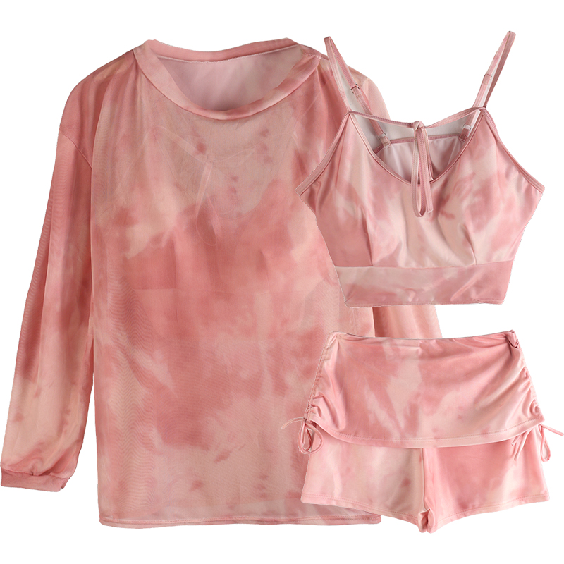 三件套装 罩衫 中大童度假沙滩防晒长袖 15岁女孩青少年分体泳衣夏季