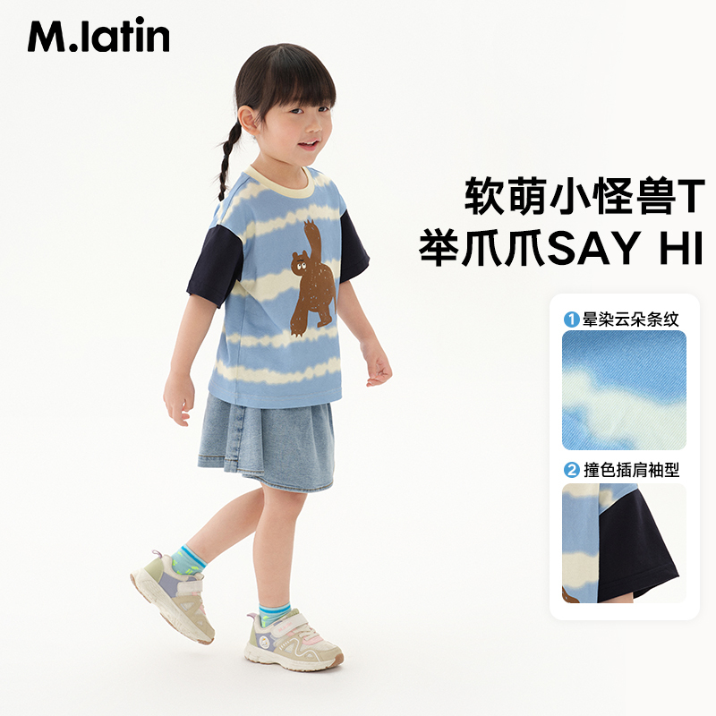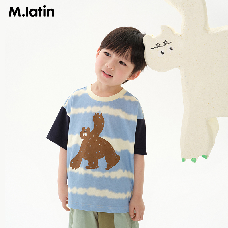 T恤 男童小童晕染条纹撞色印花短袖 马拉丁童装 T恤2025夏新款
