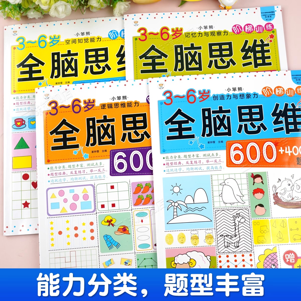 全脑思维逻辑专注力训练宝宝书籍启蒙早教书绘本中班大班幼儿园数学识字益智游戏连线书本 400题 6岁阶梯训练全脑思维训练600