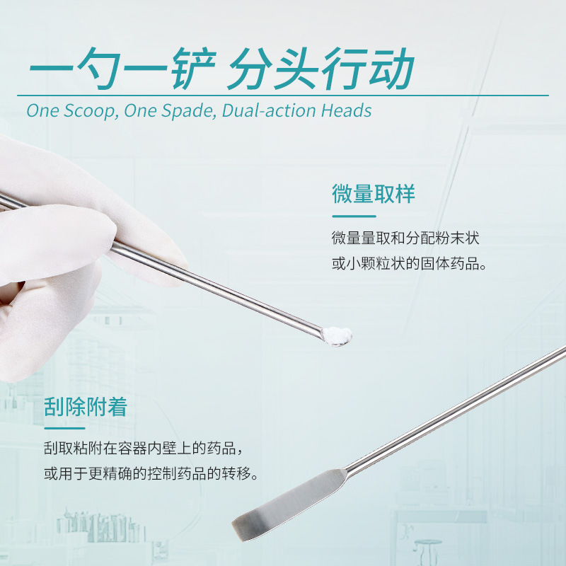 Labshark不锈钢微量药勺实验室304不锈钢材质药匙刮铲双头耐酸碱
