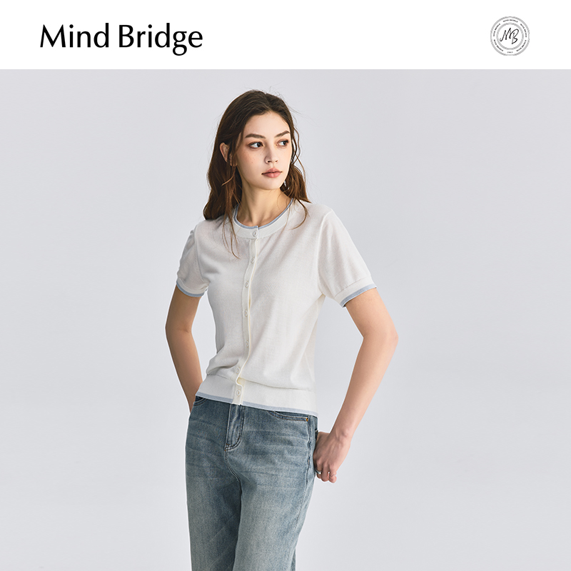 圆领开衫 MindBridge 女士撞色薄款 2025夏假两件针织短袖 莱赛尔