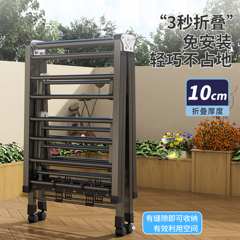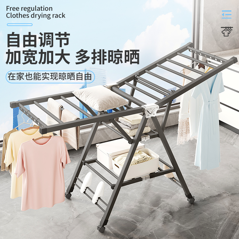 衣帽架家用置地可升降移动双层挂衣杆阳台客厅省空间折叠晾晒衣架