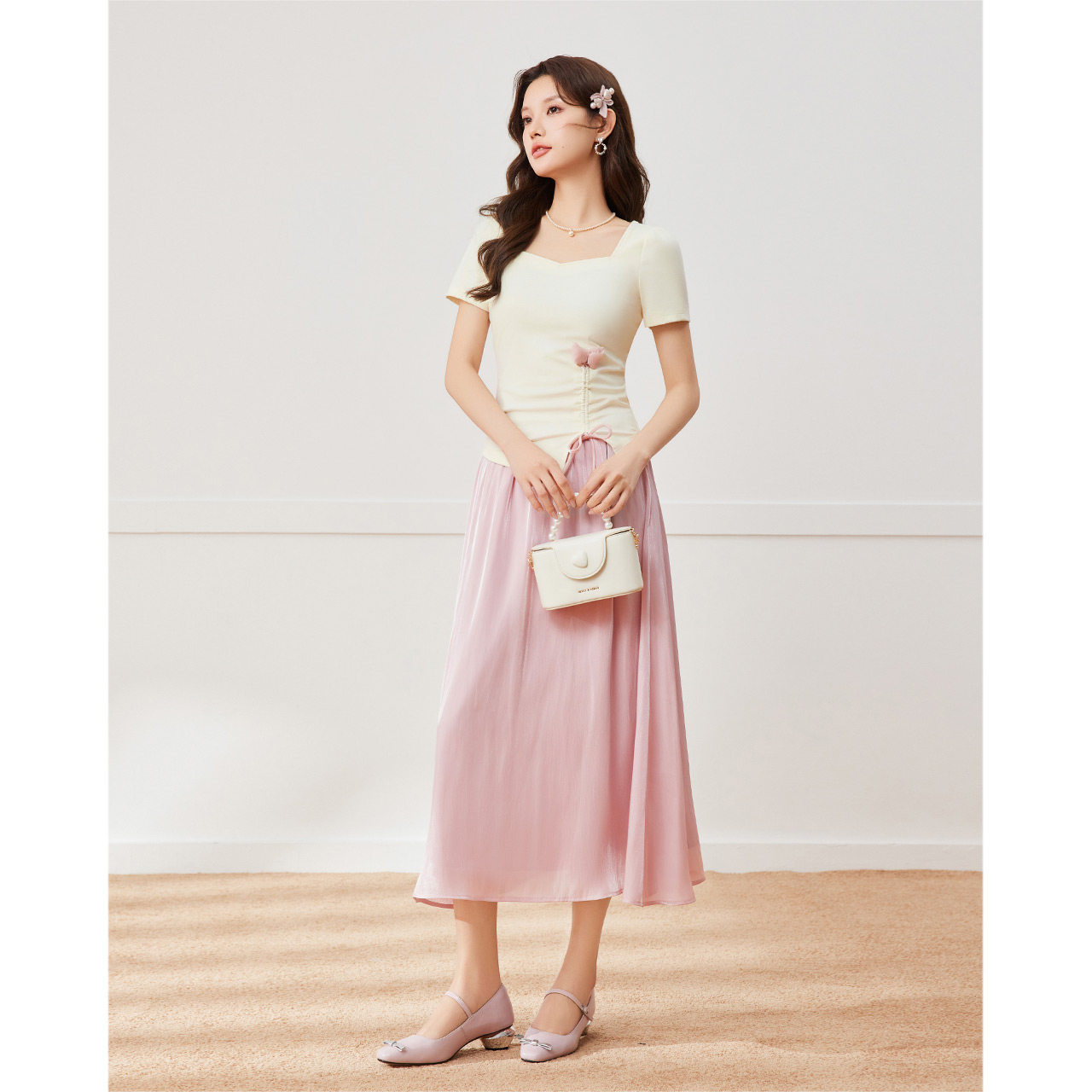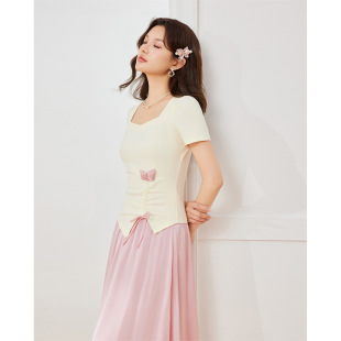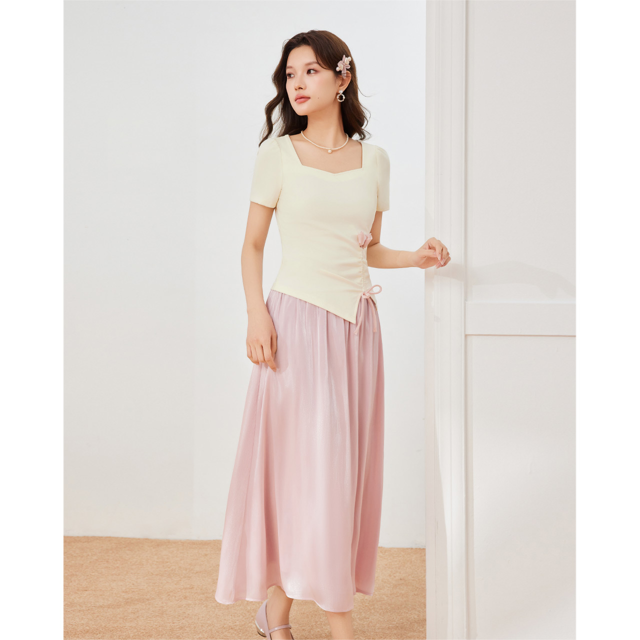 基础温柔气质日常通勤短袖 新款 不规则上下套裙 爱依服2025夏季 IEF