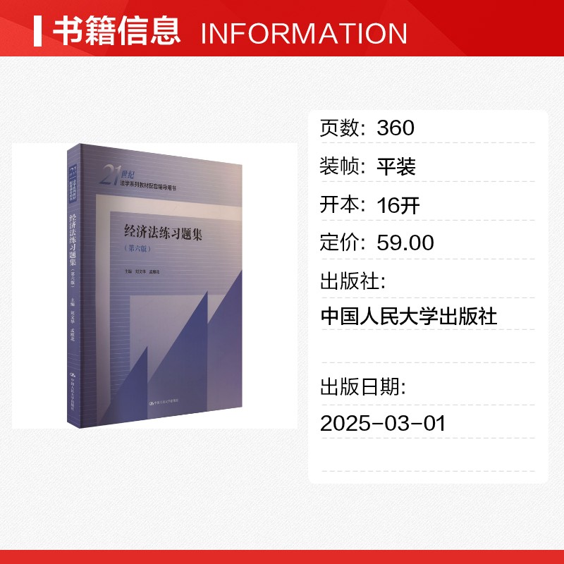 励志 社 刘文华 中国人民大学出版 图书籍 新华书店正版 大学教材经管 编 孟雁北 第六版 经济法练习题集