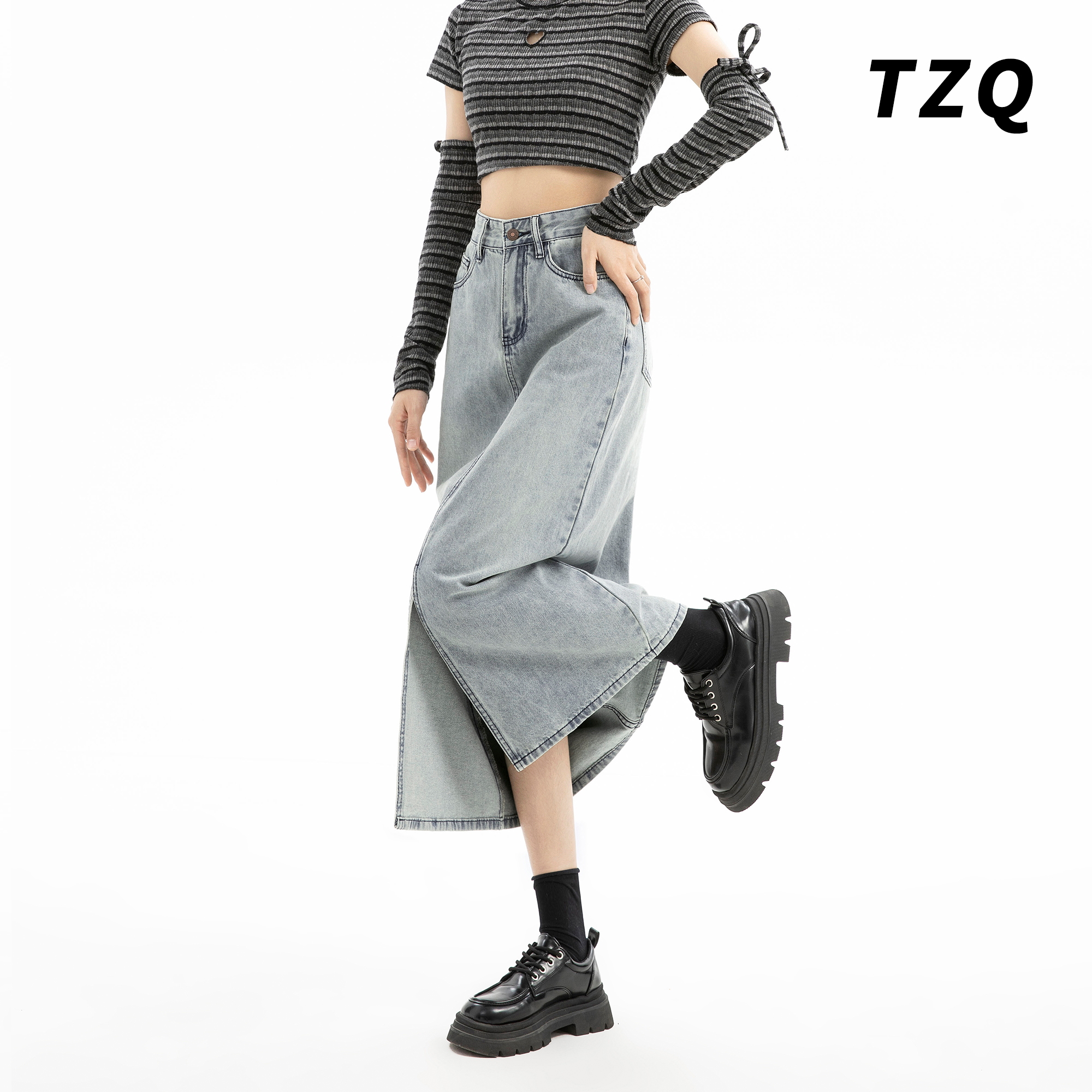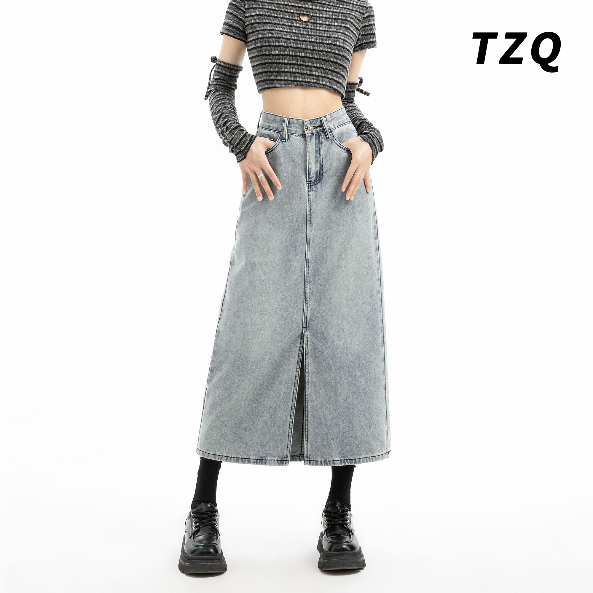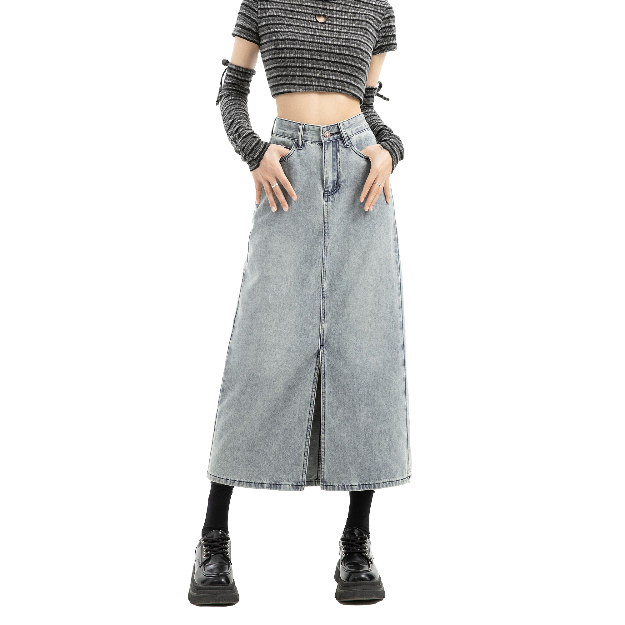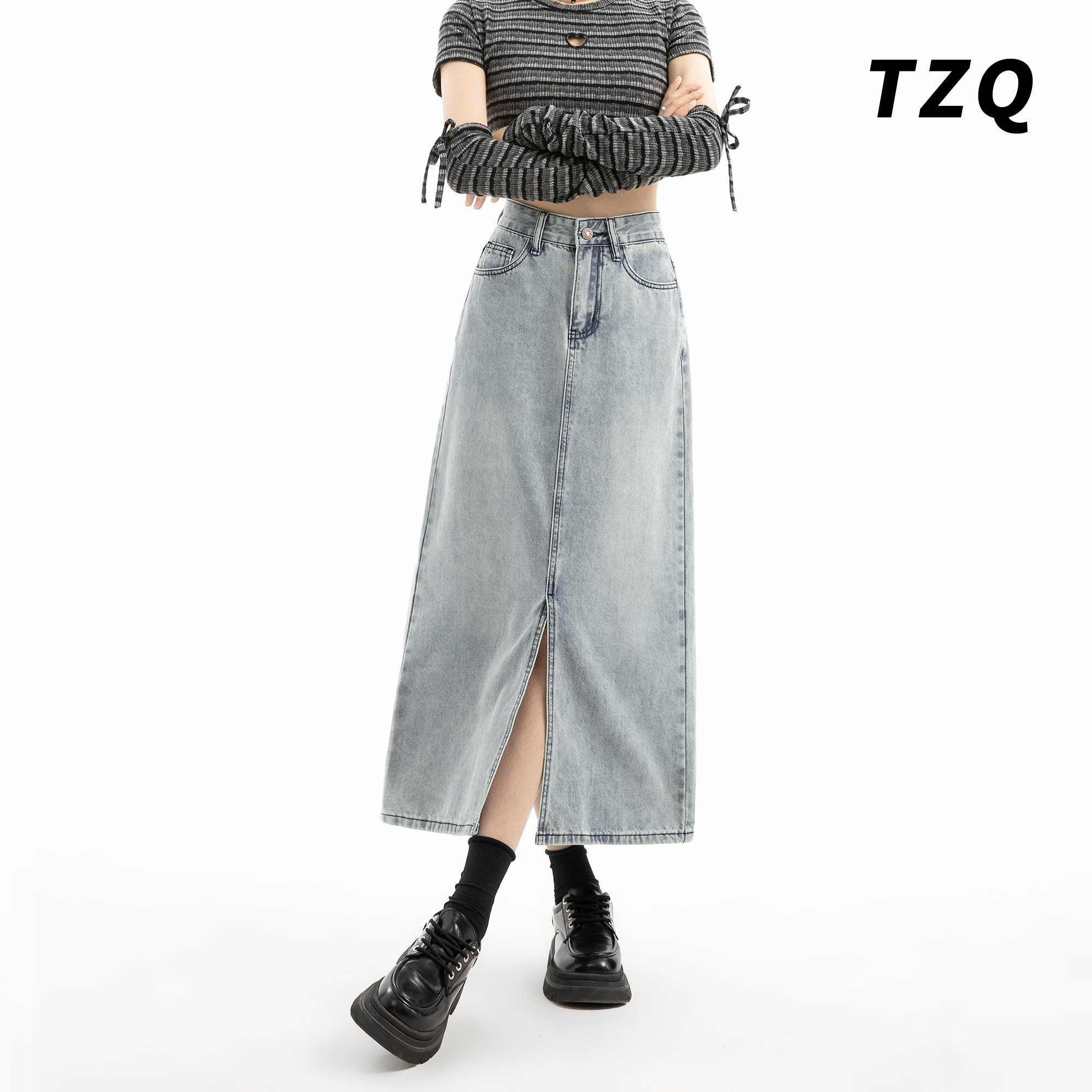 高腰开叉牛仔半身裙女2025新款 a字包臀裙 梨形遮胯显瘦百搭中长款
