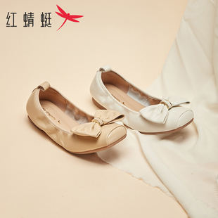 商场同款 平底蝴蝶结软底芭蕾舞鞋 新款 法式 浅口舒适单鞋 红蜻蜓女鞋