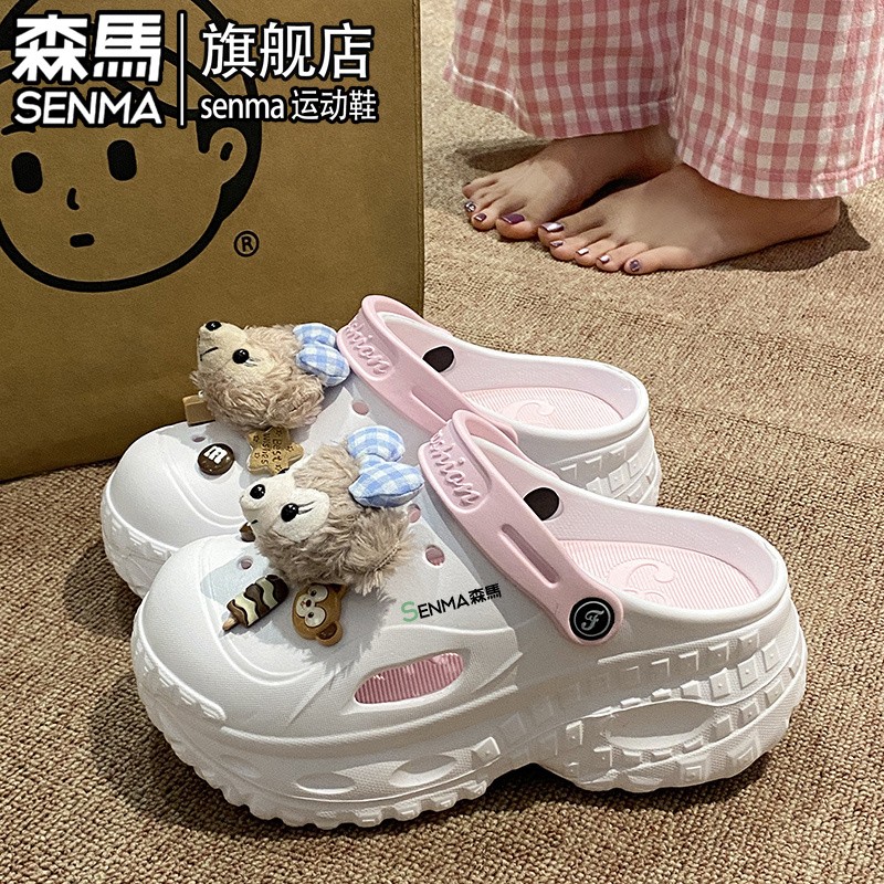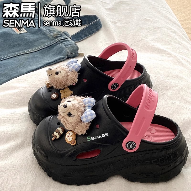 防滑防臭外穿海边沙滩凉鞋 厚底增高两穿包头拖鞋 女夏季 森马洞洞鞋