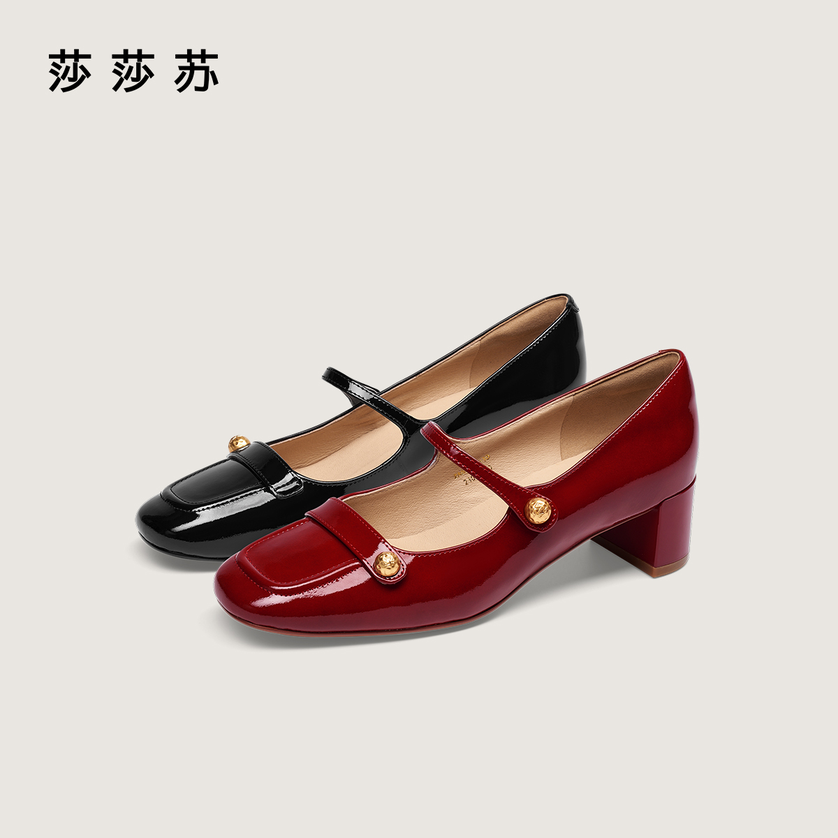 小金珠 女单鞋 莎莎苏2025春夏新款 粗跟玛丽珍鞋 红色 复古新中式